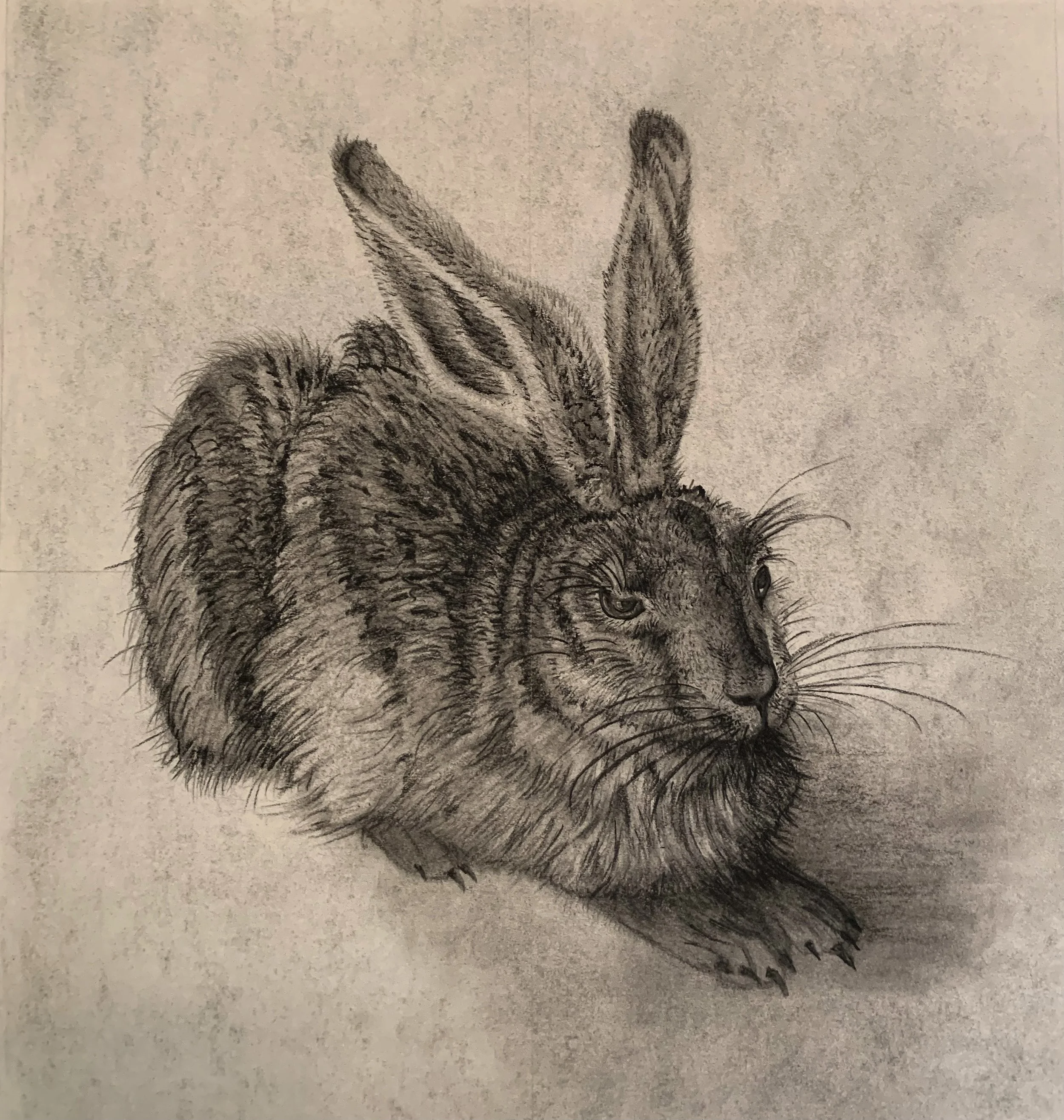Drawing practice, after Albrecht Dürer’s Young Hare, Graphite and charcoal on paper