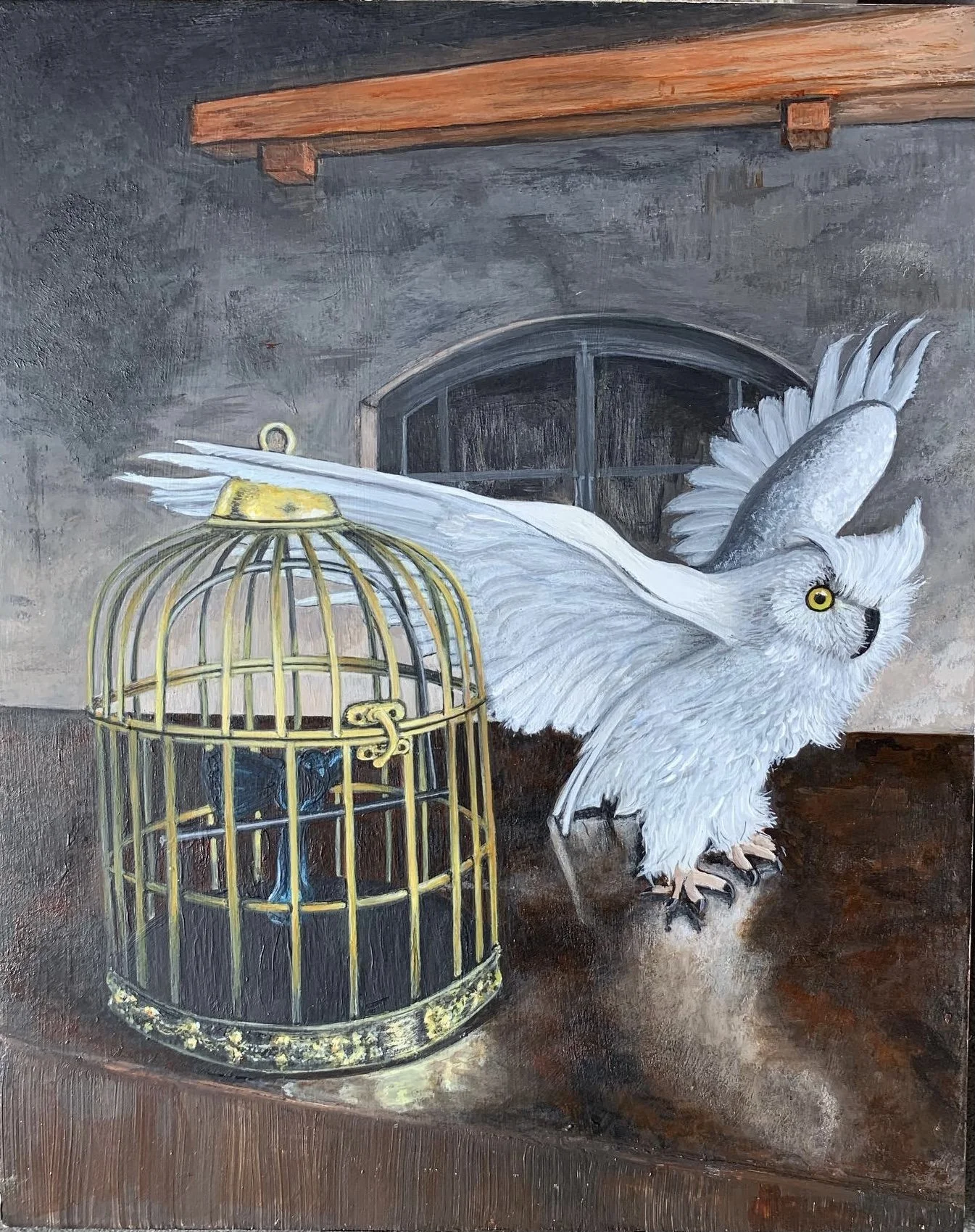 Birds of a Different Feather, Acrylic on wood panel, 10” x 8”