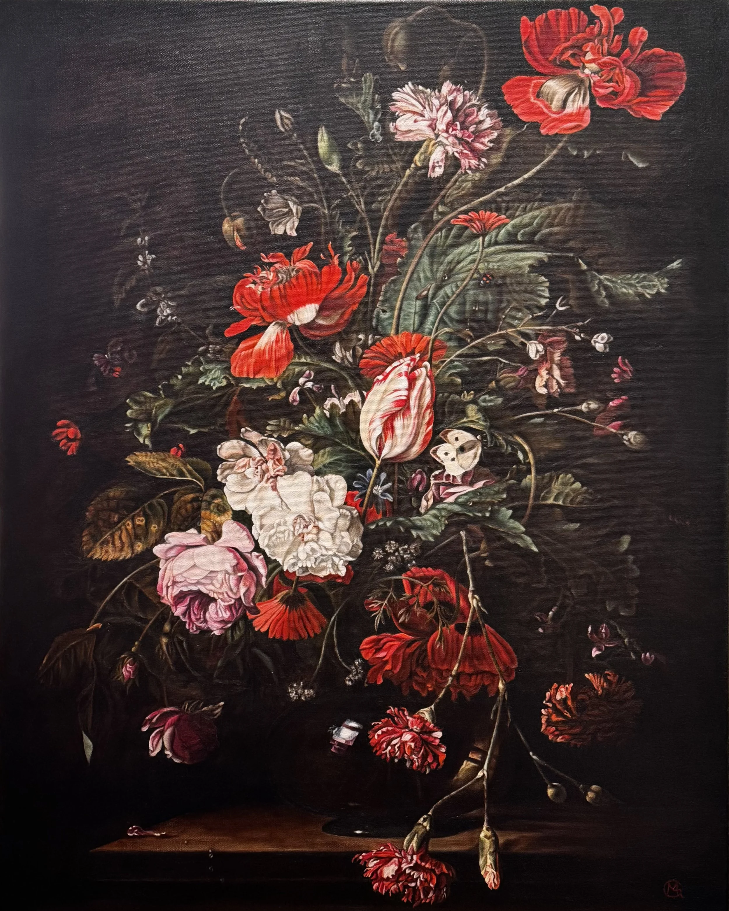 Flower Still Life after Willem Van Aelst, Oil on canvas, 30” x 24”