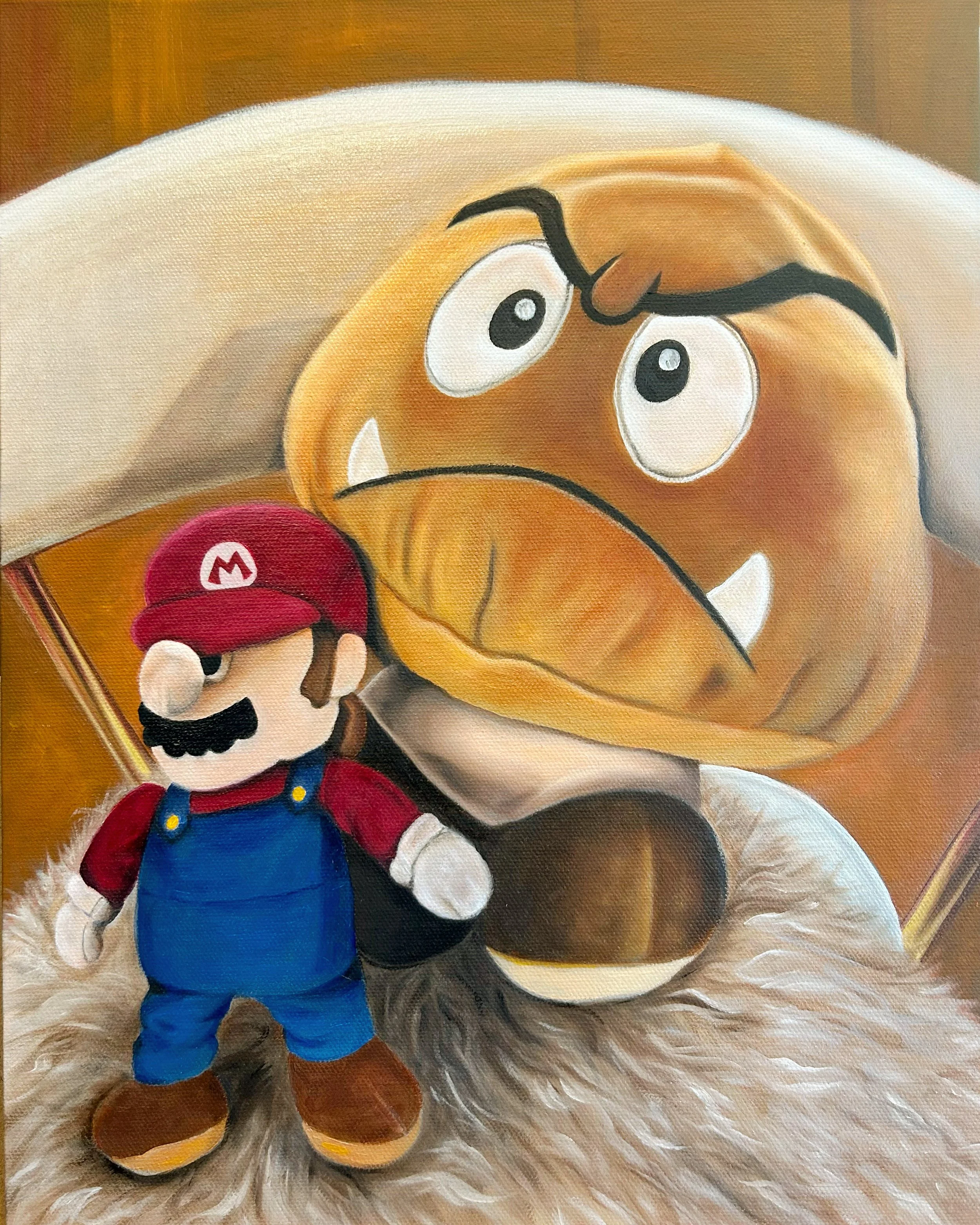 Mario and Goomba, Oil on Canvas Panel, 14”x 11”