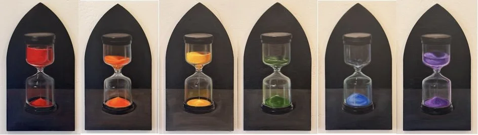 Memento Mori Hourglasses, Oil on wood