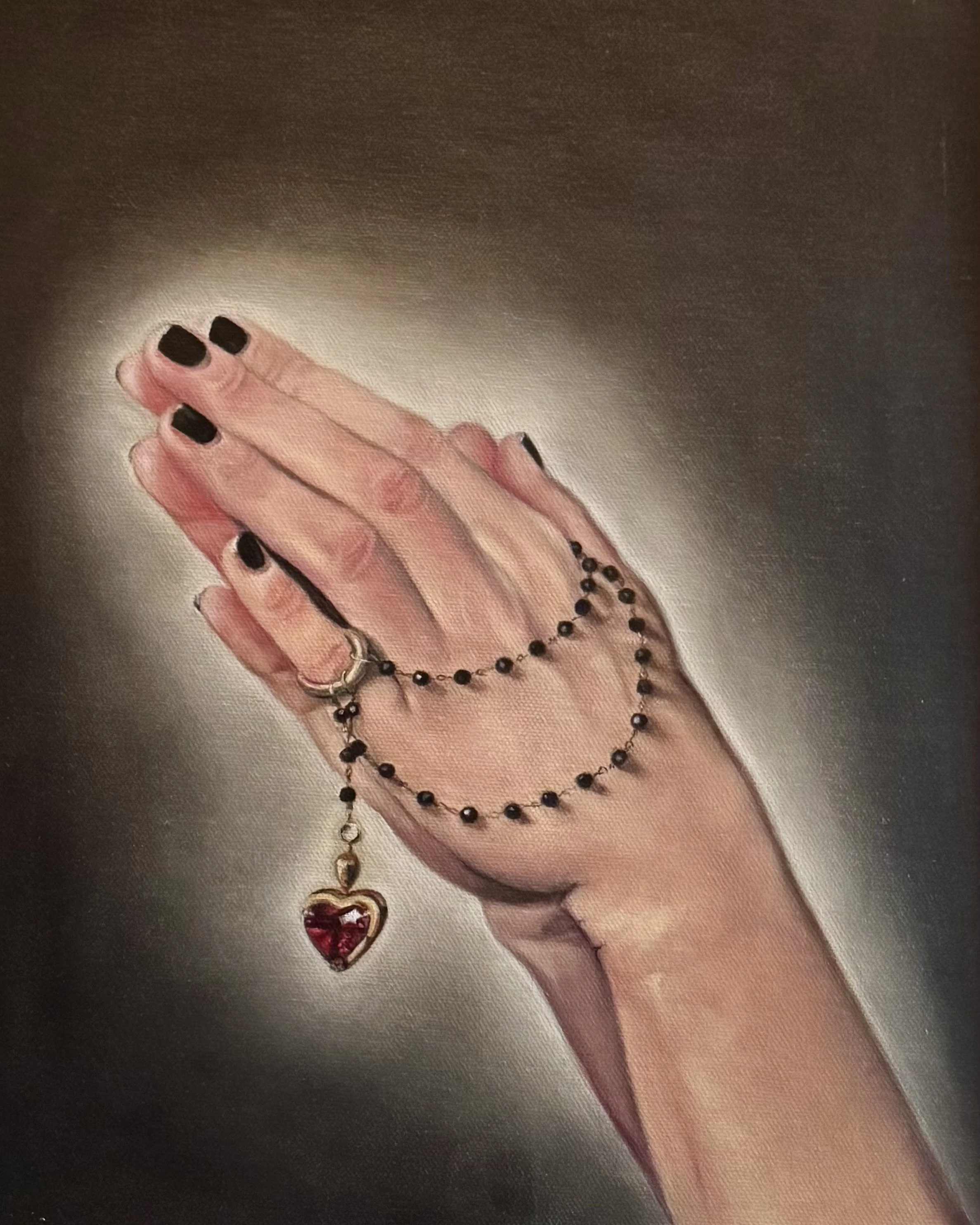 Human(ist) Hands, Oil on canvas panel, 14” x 11”